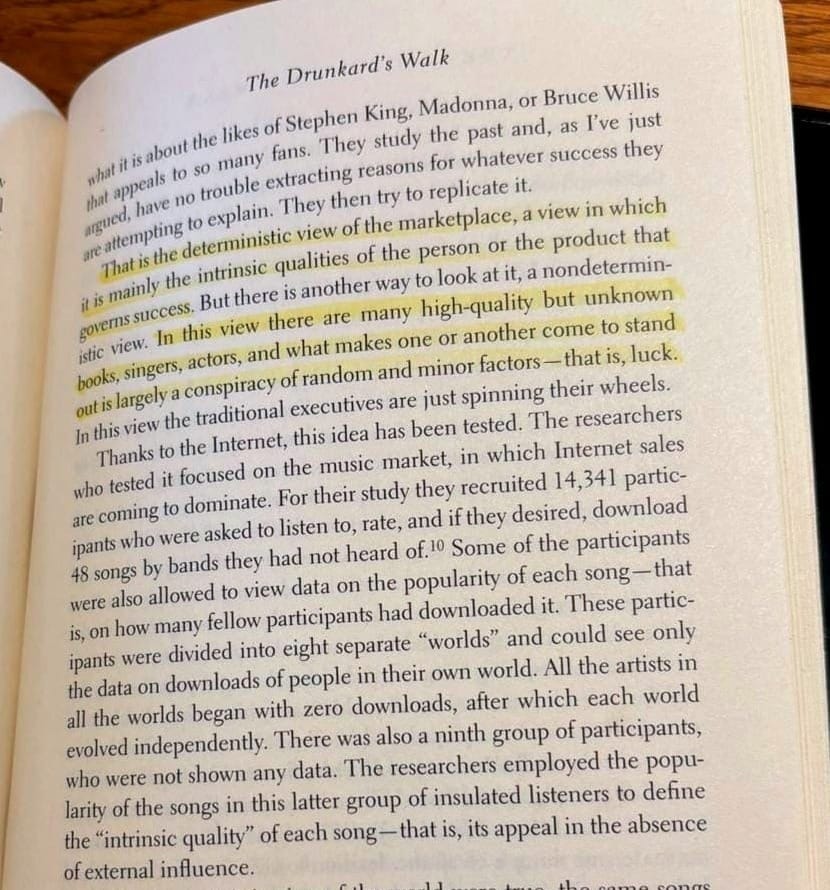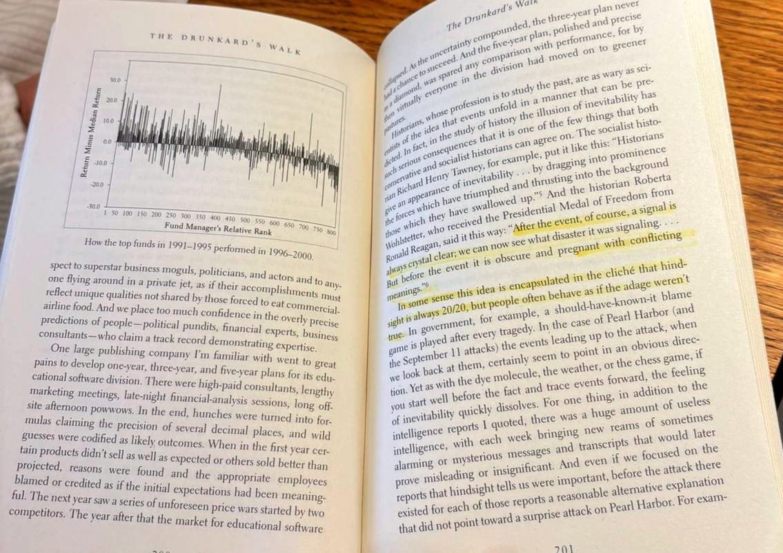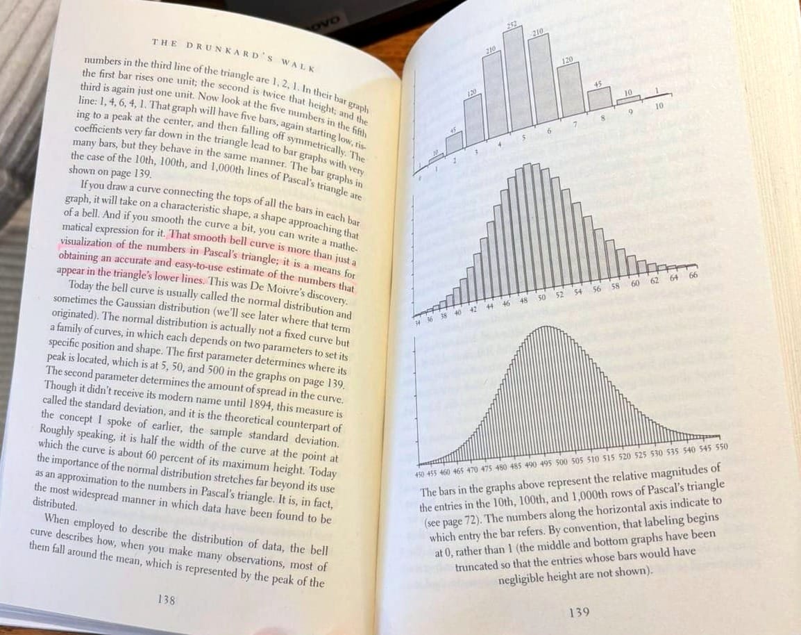 5.) The book's name comes from Einstein's paper published in 1905 regarding statistical physics. In scientific literature, it became his most cited work. He explained that "much of the order we perceive in nature belies an invisible underlying disorder and hence can be understood only through the rules of randomness." Randomness can perfectly explain our data and sometimes the patterns might look like patterns only by chance. There is one chapter in the book called "Illusions of patterns and patterns of illusions". Super interesting!