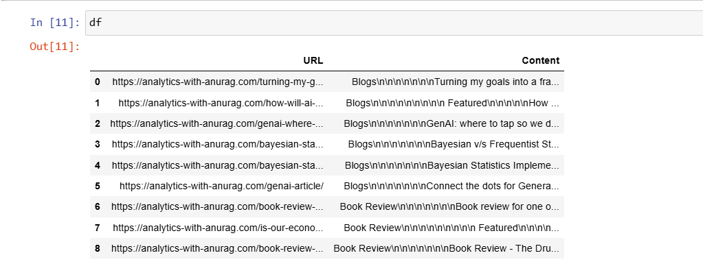 Step 2: Similarly, I read the content within each of my blog and then save all the information in a dataframe.
